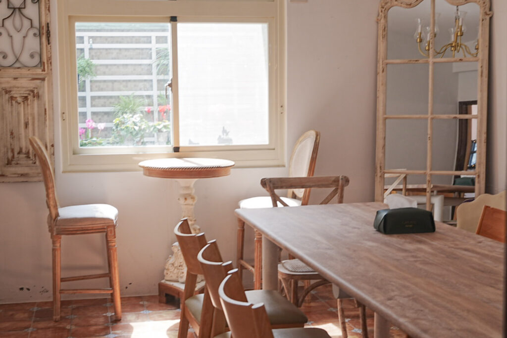 踏進店內的空間,與門扇風格一致的室內延續了異國度假的氛圍,所有留在家具上的光陰痕跡、點綴的花草、精巧的擺飾,都美好得令人屏息。非日常的裝潢讓人脫離了日常的煩悶。