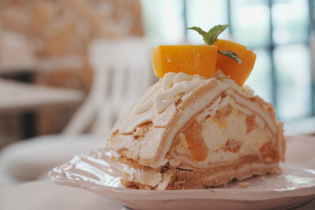 美味的餐點與和藹的待客之道,同樣是芭荳令人難以忘懷的特色。老闆娘雖是興趣使然而親手製作甜點,每一種卻都是令人滿足的美味。其中最具特色的便是帕芙洛娃。帕芙洛娃(Pavlova)是一種蛋白酥點心,滑順的鮮奶油與表面脆爽的蛋白酥一同放入口中,會產生不可思議的和諧感,滋味清爽而不讓舌頭感到負擔,讓人忍不住一口接一口。芭荳的帕芙洛娃總是會搭配當季的水果,在炎炎夏日中,享受到的便是放入了新鮮芒果的帕芙洛娃,芒果獨特的濃郁香氣。