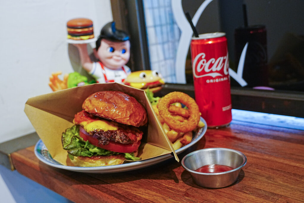 內用低消為一份炸物或飲料,用餐時間為90分鐘。小小的店面內到處都是與漢堡有關的玩具與模型,被玩具角色們享受的表情所圍繞著,更加深了吃漢堡這件事的幸福感。