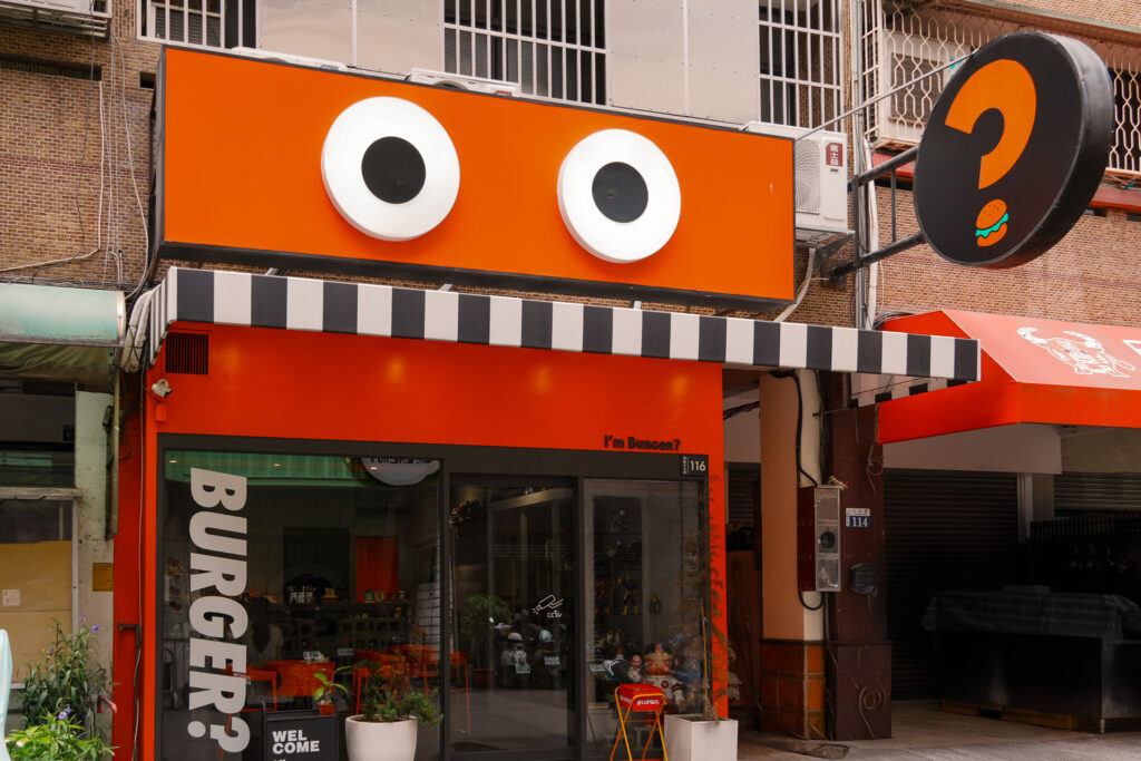 2024年在公正路上,出現了一雙又大又圓的眼睛,盯著來來往往的人車之時,冒出了大大的問號。橘黑白構築出的主色調,使店面外觀既可愛又活潑,也塑造了深刻的第一印象。