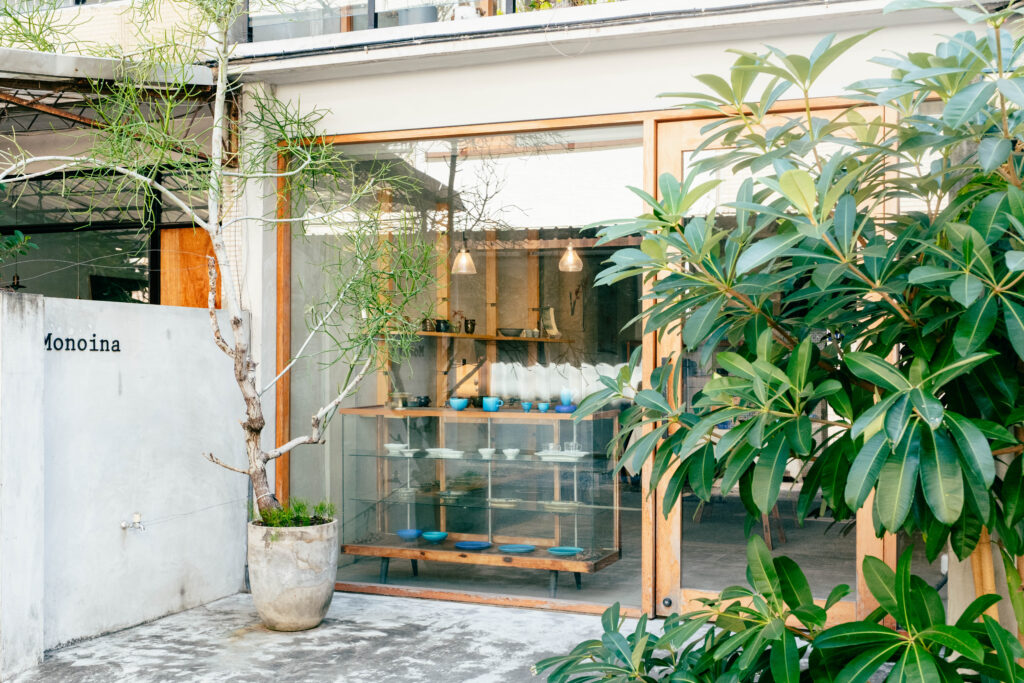向上路的 Monoina 以日本手作器皿為經營主軸,店內販售多位工藝家的風格作品,從食器、茶具、花器到生活雜貨,創作媒材涵蓋陶藝、敲打金工到玻璃創作。即使是同個樣式的作品,因為手作的關係,每件色澤、邊緣弧度和手持感受都會略微不同,正是欣喜的迷人之處。