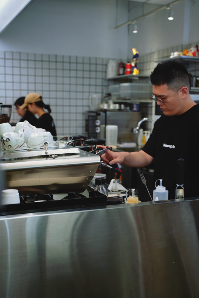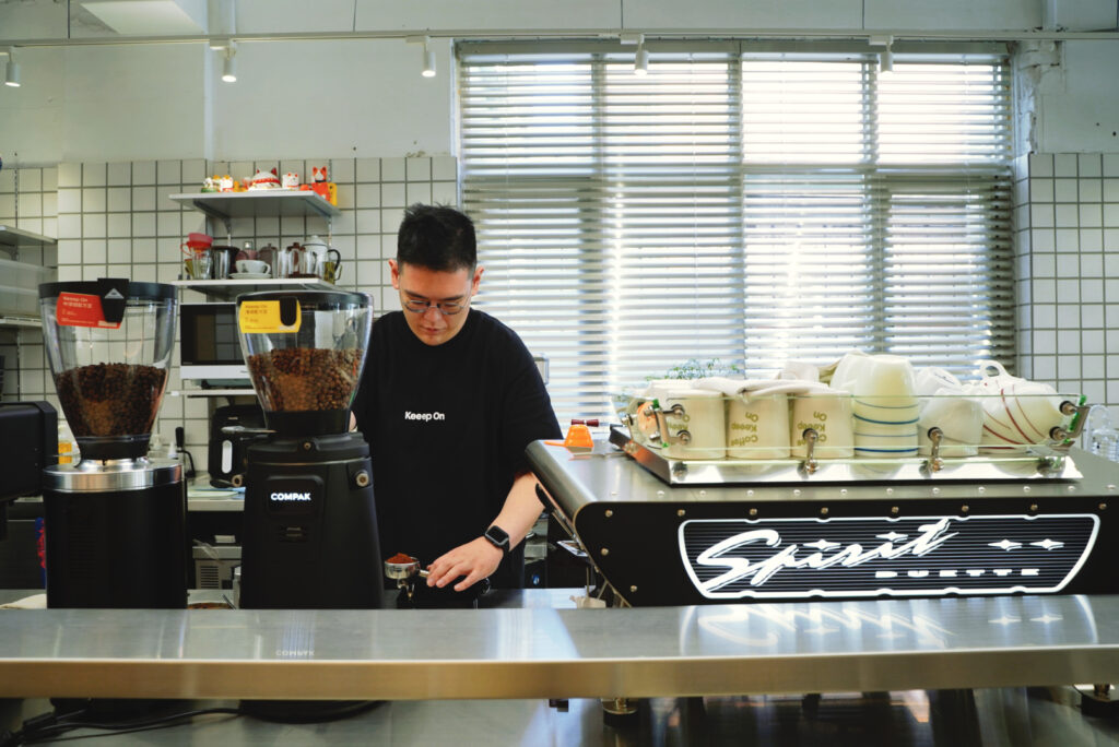 這天跟新開在勤美草悟生活圈裡的自家烘焙咖啡館 Coffee Keeep on 的店主人之一喬治相約,聊到對於一杯咖啡在生活裡的想法,喬治笑著說,「咖啡其實就是飲料,喝了要會開心」。眼前這位年輕的大男生,年紀雖輕,但在咖啡產業裡可是經歷了幾間名店的洗禮。