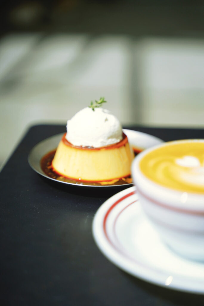 除了咖啡,在甜鹹點的設計上,喬治跟夥伴也費盡心思,本身是布丁控的他,在開店前吃遍了各大咖啡館的布丁,從口感到形狀都做了評比,「布丁很酷,可以有很多型態。」喬治一邊分享著他手機裡記錄的布丁筆記一邊說著。