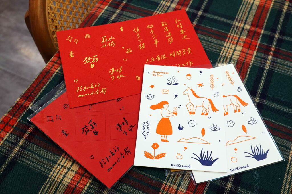 店內的眾多明信片,有些是主理人親自設計,有些則來自其他設計師作品,其中根據多方需求擁有眾多主題分類。因應即將到來的年節氛圍,主理人特別推薦適合寄給親友的明信片,例如馬年賀卡、春聯造型小卡、可增添小互動性的_會更好小卡,可以自由填入期許願望,每年過年更會推出專屬紅包等。