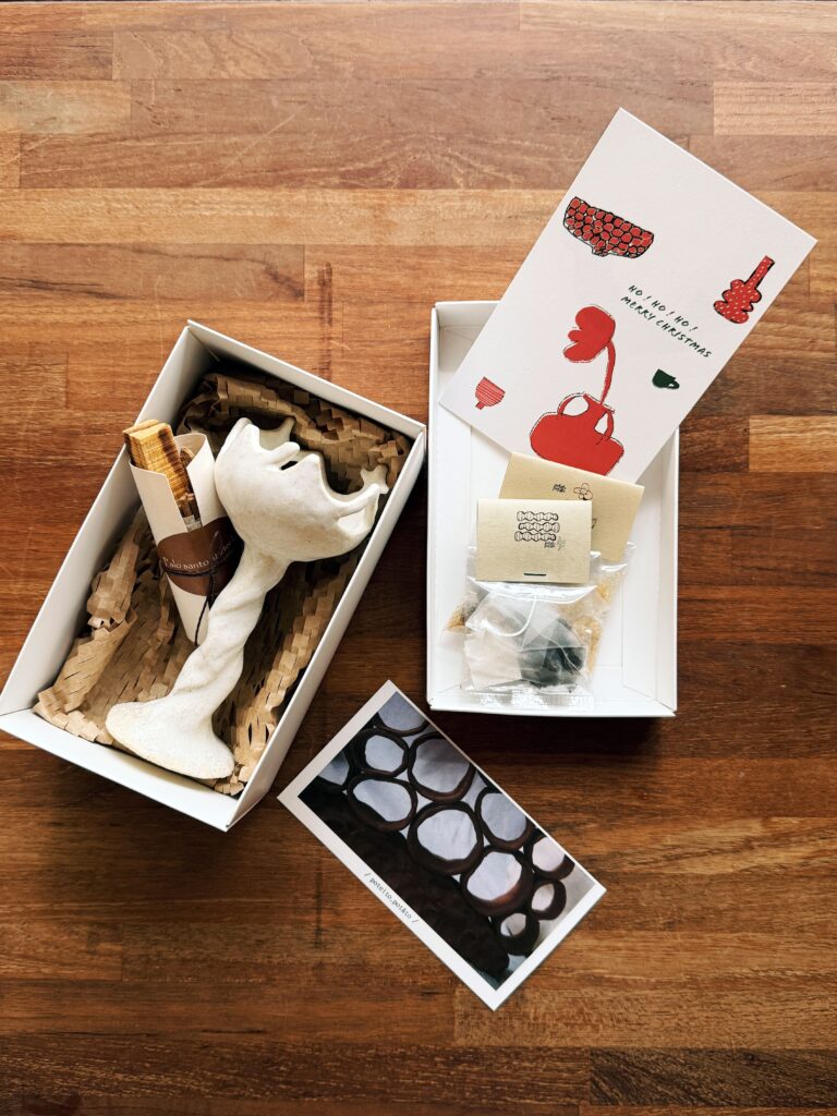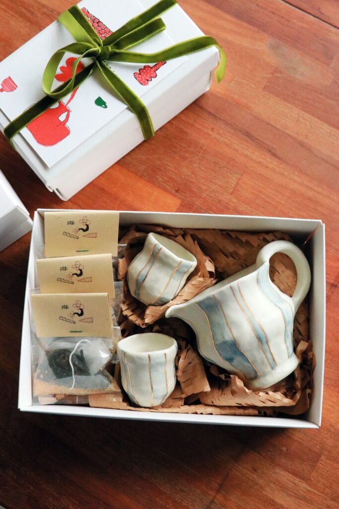 隨著品牌逐漸延伸出禮物店的概念,隨後推出的「禮物服務」與「客製陶器禮盒」服務,讓顧客在購買器皿時不再只能選擇單一項目的產品,而是可以藉由周邊物件的延伸,為器皿發展出一系列有儀式感又能兼具實用性的使用體驗。例如茶具搭配古樹茶葉的「古樹茶禮盒」剛好可於年節與親友一同泡茶。