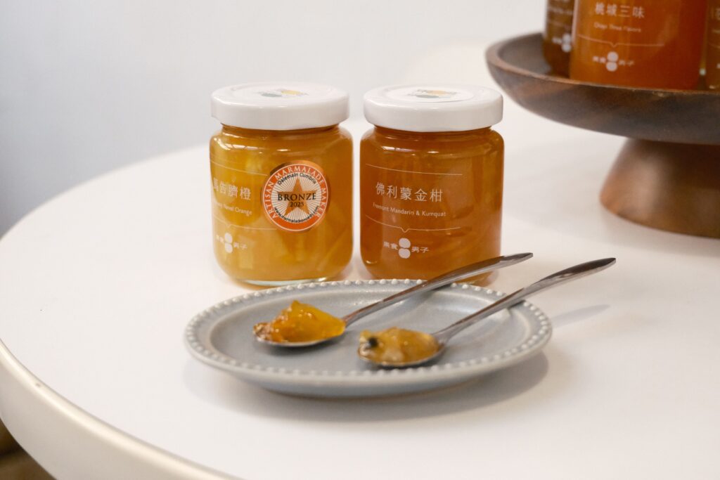疫情成了轉捩點,當生活慢了下來,他們重新思索:「果醬才是品牌的根基。」2024年夏天,他們收起刨冰店,專注於成為台中西區唯一的果醬專賣店。從第一年參賽只拿到銅獎,到今年認真研讀評審評語、不斷調整果皮處理工法,這些頭銜,是他們對自己靈魂的交代——「很開心,能把最根本的果醬,捧回手心好好做。」