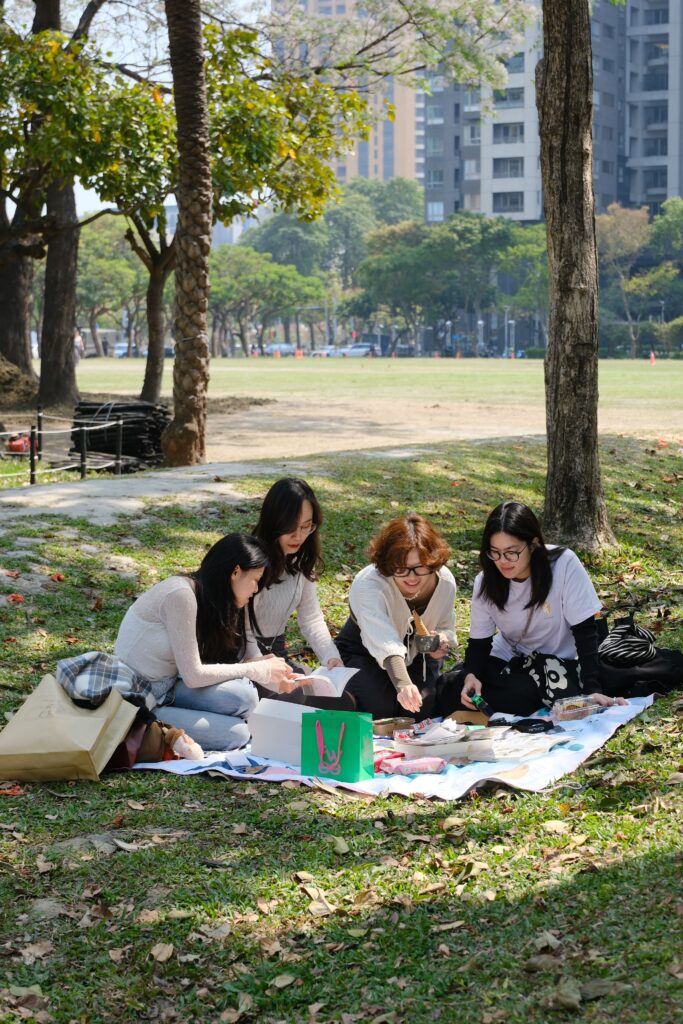 對新世代而言,野餐不只是聚在一起吃東西,而是一種帶有風格的生活實踐。透過設定 dress code、準備主題書單或共同創作插畫,人們在草地上構築出屬於當下的生活場景,並透過 Instagram 等影像平台記錄與分享。