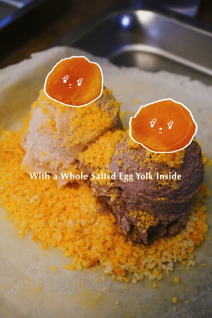 結合鹹蛋黃做成的堅果叭噗冰捲,鹹香濃郁,堆疊層次,帶給大家不同以往的臺灣味。