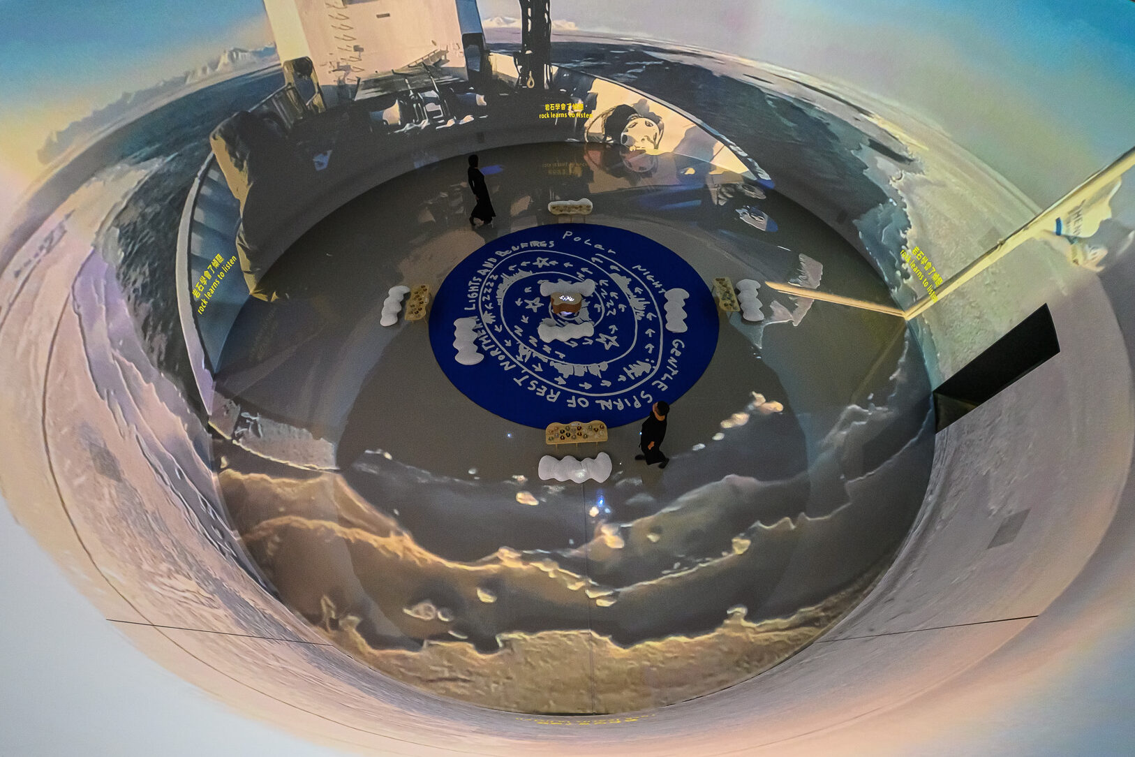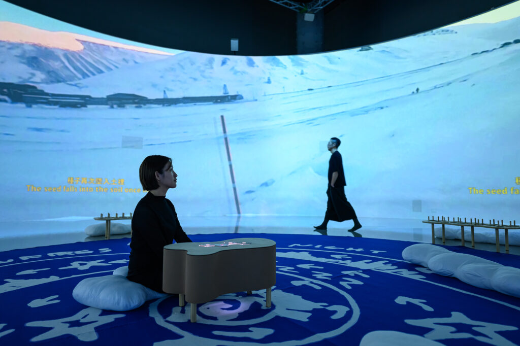 〈天空寫下的故事〉以臺灣原生紅藜為敘事者,述說從島嶼南端遠渡北極、再於新世界萌芽的旅程。由徐叡平、Nancy Valladares、葉博允、Haamid Rahim、黃偉軒共同創作的影像裝置,靈感來自挪威斯瓦爾巴的末日種子庫。觀者透過磁磚拼圖重組紅藜的記憶碎片,每次觸碰都會觸發不同的影像與聲音,生成獨一無二的故事。
