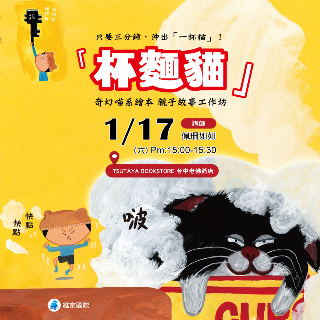 這個一月,邀請大小朋友一起走進《杯麵貓》的奇想世界,聽故事、玩想像,找找屬於自己的那一杯夢中之貓。